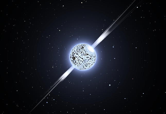 Following is a graphic representing a Neutron Star. All Vortex Stars are extremely-rapidly rotating, dense objects, which emit strong beams of energy along their poles.