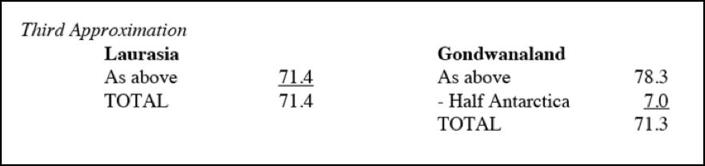 When we adjust the Laurasia/Gondwanaland figures for this new smaller value for