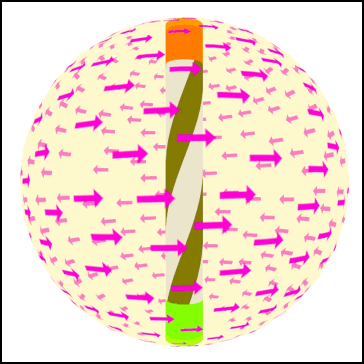Here this model is called a Spindle Vortex. It can be represented as a rapidly spinning ball, with a defined axis and direction of rotation.
