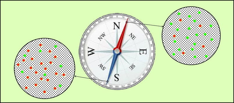 7. With magnetism, clumps of material have a somewhat preferred vortex orientation in space, ie the clump has an actual non-zero axis vector. This must be matched by a similar summed axis vector in the opposite direction in another clump or clumps.