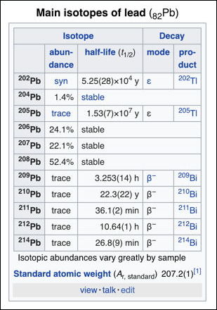 [22]. Isotopes of lead. https://en.wikipedia.org/wiki/Isotopes_of_lead .