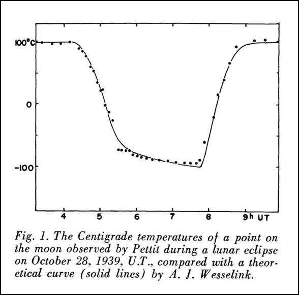 Sinton's article also includes a graph of changes in the temperature of a point on the Moon during a 1939 lunar eclipse.