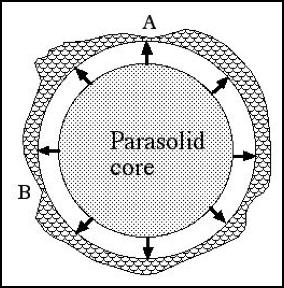This sketch, obviously very exaggerated, represents an Earth which is expanding uniformly from within and which has an outer layer of varying thickness or height above a uniform mantle.