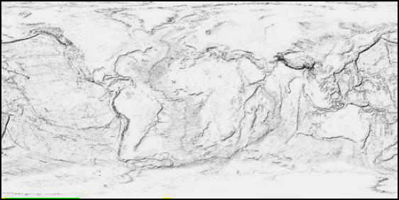 If the slope or gradient of a particular area of the Earth's surface influences how it might slump or slide, as would be expected, then a map showing gradients over this surface should correlate to some extent with recorded earthquake zones.