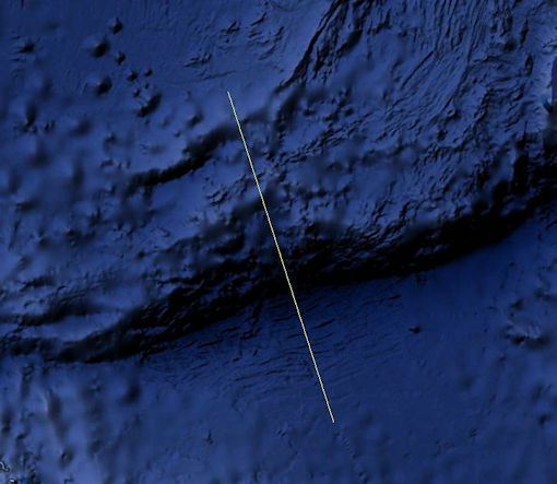 We can do the same sort of exercise as with Bremer Bay, to create a cross-section across the Mariana Trench. In this instance, the cross-section ruler is about 310 km long.