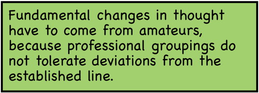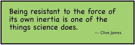 I make extensive use of Wikipedia, an excellent source of current views about topics of the day. But Wikipedia is not a good vehicle for surfing a paradigm shift. Like the French Insulter from the movie Monty Python and the Holy Grail, prancing on the ramparts of his castle in defiance of the forces gathering below, the status quo is not going to give up easily.