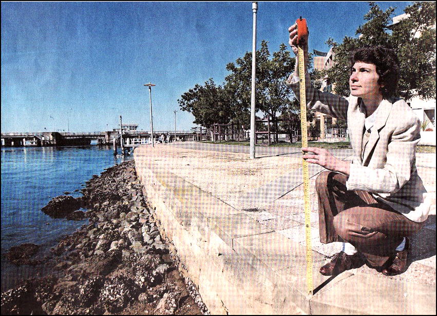 Janet Henriksen shows the new minimum building base level required by Lake Macquarie City Council. From [11]