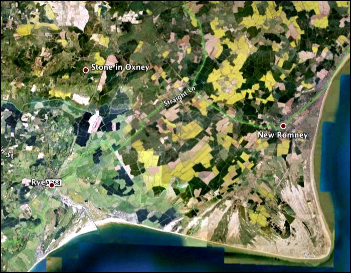 The modern coast of southeast Kent. New Romney, one of the Cinque ports in 1500, is now 2 km inland.