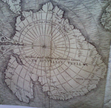In a fascinating aside, this modern picture is turned on its head by the depiction of the Antarctic continent, with quite good accuracy, in a map of the world made by Oronce Fine in 1532!