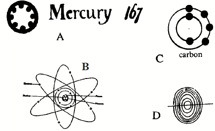 Fig. 101.1 Older and newer representations of the atom. A: One of John Dalton's original