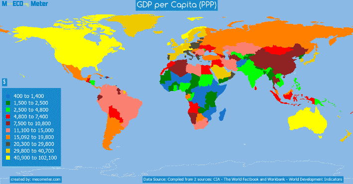 [7] GDP per Capita (PPP) - by country. http://mecometer.com/image/worldmap-multi/gdp-per-capita-ppp.png .
