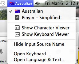 Back in Section 7, on typing Chinese characters, the flag image which appears in the top menu on setting multiple input methods was pointed out.