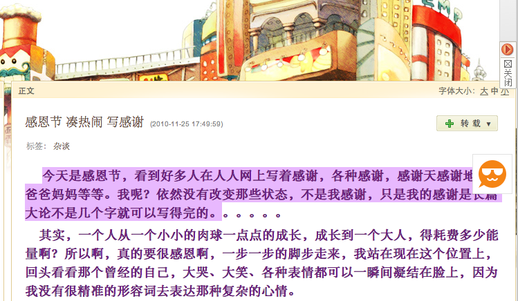 As an example, here is part of a Chinese person's blog on a Chinese blog-hosting site. You can select part or all of the blog, and paste it in to a MacKEY write-in page.