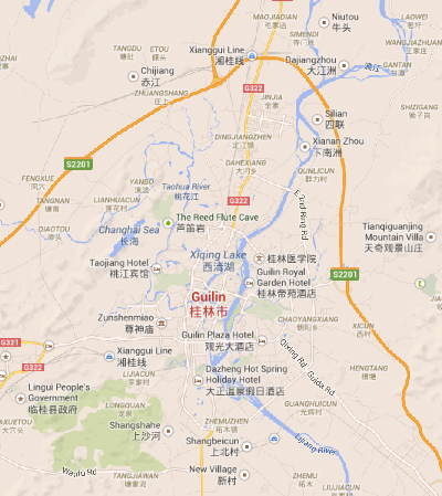 Google Earth and Google Maps views of places in China may show place-names in Pinyin also. Here is a Google Maps view of the area around Guilin in southern China.
