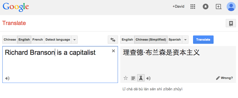 Don't take the (very approximately phonetic) rendering of "Richard Branson" as "Li3-cha2-de2-bu4-lan2-sen1" as the only possible version. Some Western forenames are fairly well established -- "David" is usually rendered as da4-wei4 (大 卫) or da4-wei2 (大 为).