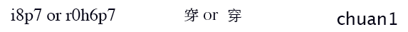 In the current version, the normal form for the character "chuan1", as depicted in the font currently used by your web browser, is 穿. The Codel tables used in MandarWeb use derivations of characters from a number of fonts. That is, in working out the Codels for "chuan1", you might arrive at "i8p7" or "r0h6p7". Looking either up in the Codel tables will still give you the same result, "chuan1".