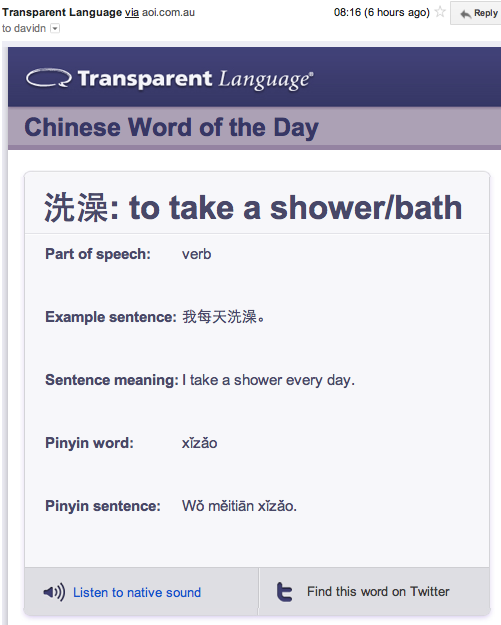 One of these is Transparent Language's "Word-of-the-day", at http://www.transparent.com/word-of-the-day/today/chinese.html [13]. If you sign up, a free lesson is delivered by email each day.