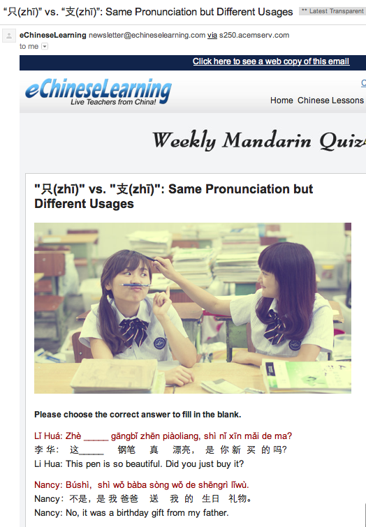 Another site is eChineseLearning's newsletter, at http://www.newsletter@echineselearning.com [14]. This comes approximately weekly.
