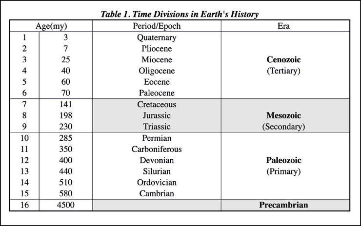 Table 1. Time Divisions in Earth's History