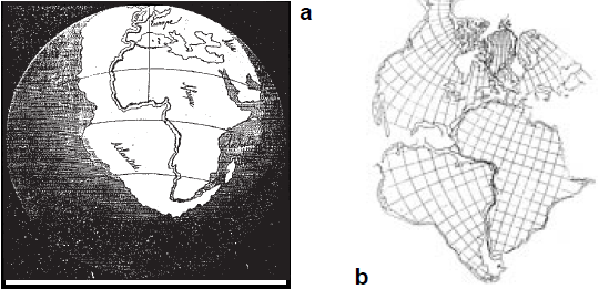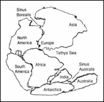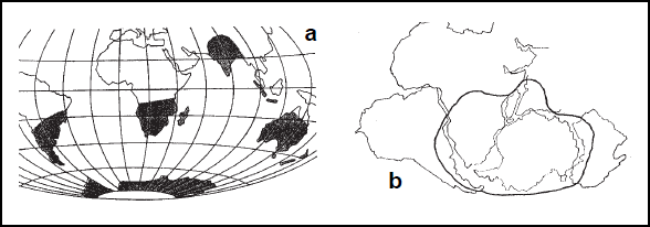 Fig. 3.2. a) Sites of Glossopteris fossils ; b) Suggested former