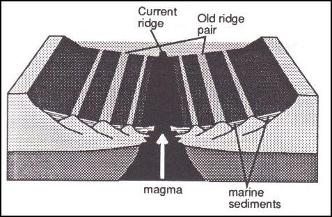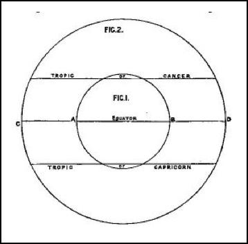 Fig. 3.8. Present and unexpanded Earth cross-sections, from Drayson [28]
