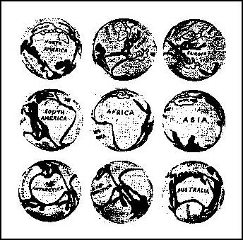 Fig. 3.7. Globes of Earth expansion according to Hilgenberg