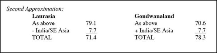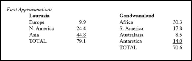 When we adjust the Laurasia/Gondwanaland figures for this new smaller value for
