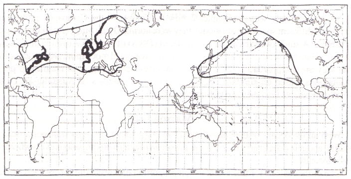 Fig. 6.2. Distribution of eelgrass, Zostera marina