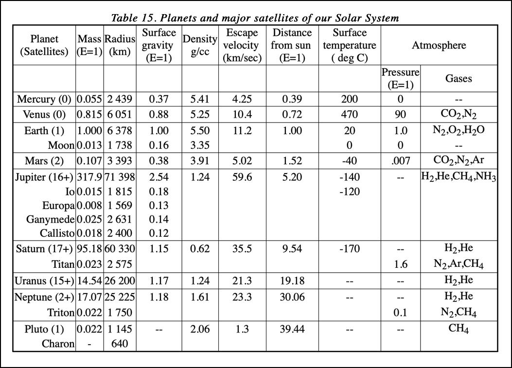 Table 15 (mostly from [1]) gives some details of the planets of the solar