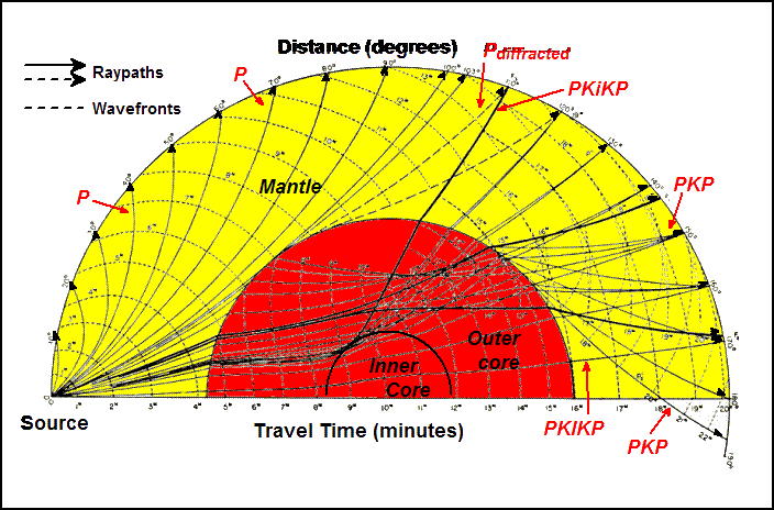 Fig. SL107-F4. Ray-Path plots for seismic waves. From [A].