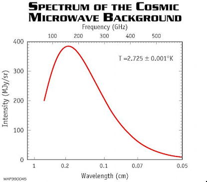 Figure TOS1 (repeat). Spectrum for the Cosmic Microwave Background Radiation. From [2].