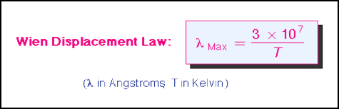 Derived from the Planck Law, the Wien Law gives the wavelength of the peak of the radiation distribution. The laws assume that emitting and receiving objects are what are called "Black Bodies" -- they are perfect emitters and receivers.