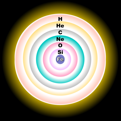 Figure ITE18. Postulated 'fusion shells' in a massive, evolved star just prior to core collapse. Not to scale. From [27].
