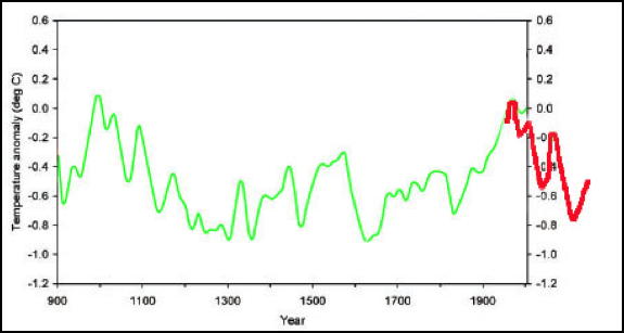 Figure 9. Northern-hemisphere temperature data based on tree rings. Redrawn from [13].