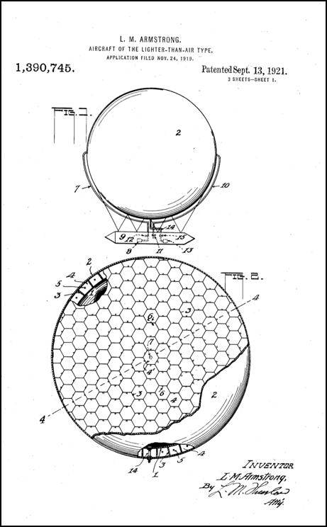 [6]. Lavanda M Armstrong. Aircraft of the lighter-than-air type. US patent 1390745 . Published Sep 13, 1921.